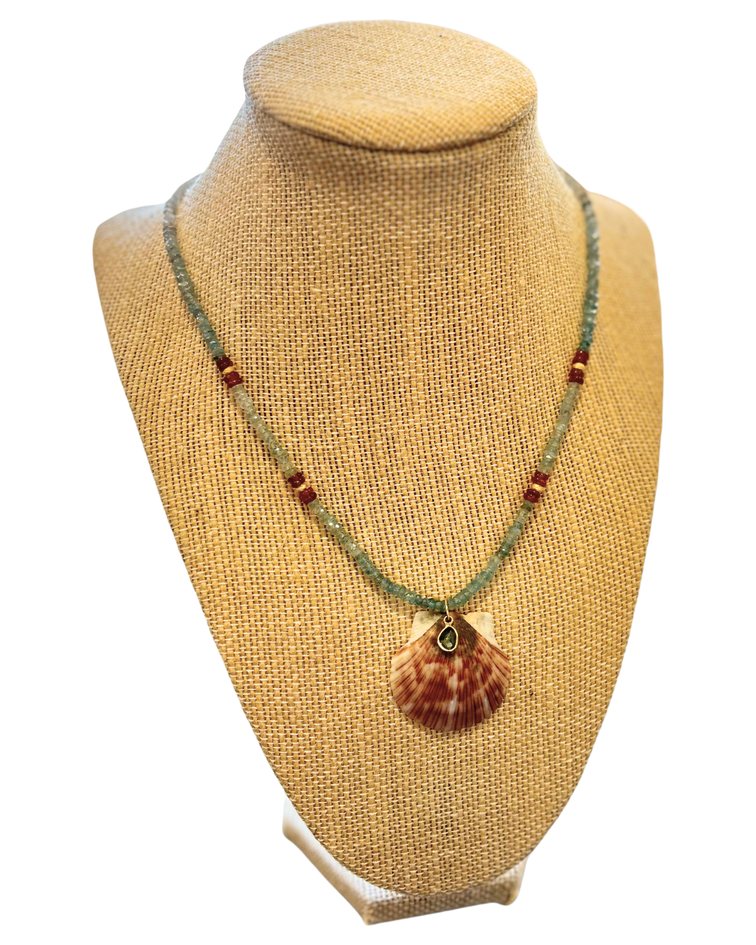 Aquamarine and Hessonite Garnet Necklace with Shell Pendant