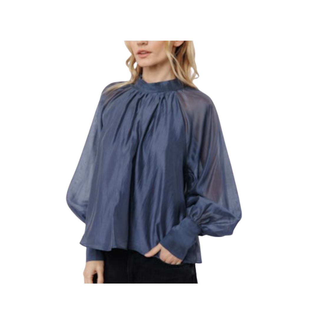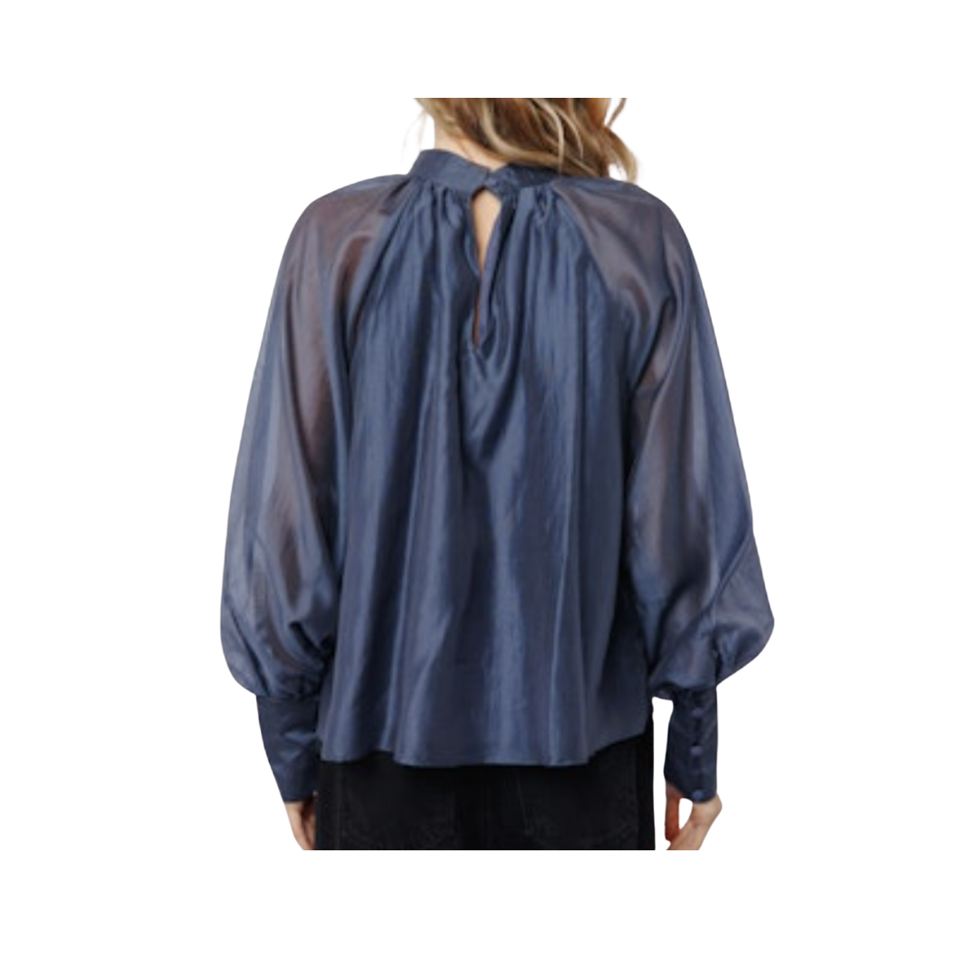 The Arien Long Sleeve Blouse offers a sophisticated look with its elegant sheer sleeves and rich navy blue color. Crafted for both style and comfort, this blouse adds a refined touch to any professional or evening ensemble, pairing seamlessly with tailored pants or skirts. Its lightweight fabric and timeless design make it a versatile addition to your wardrobe.