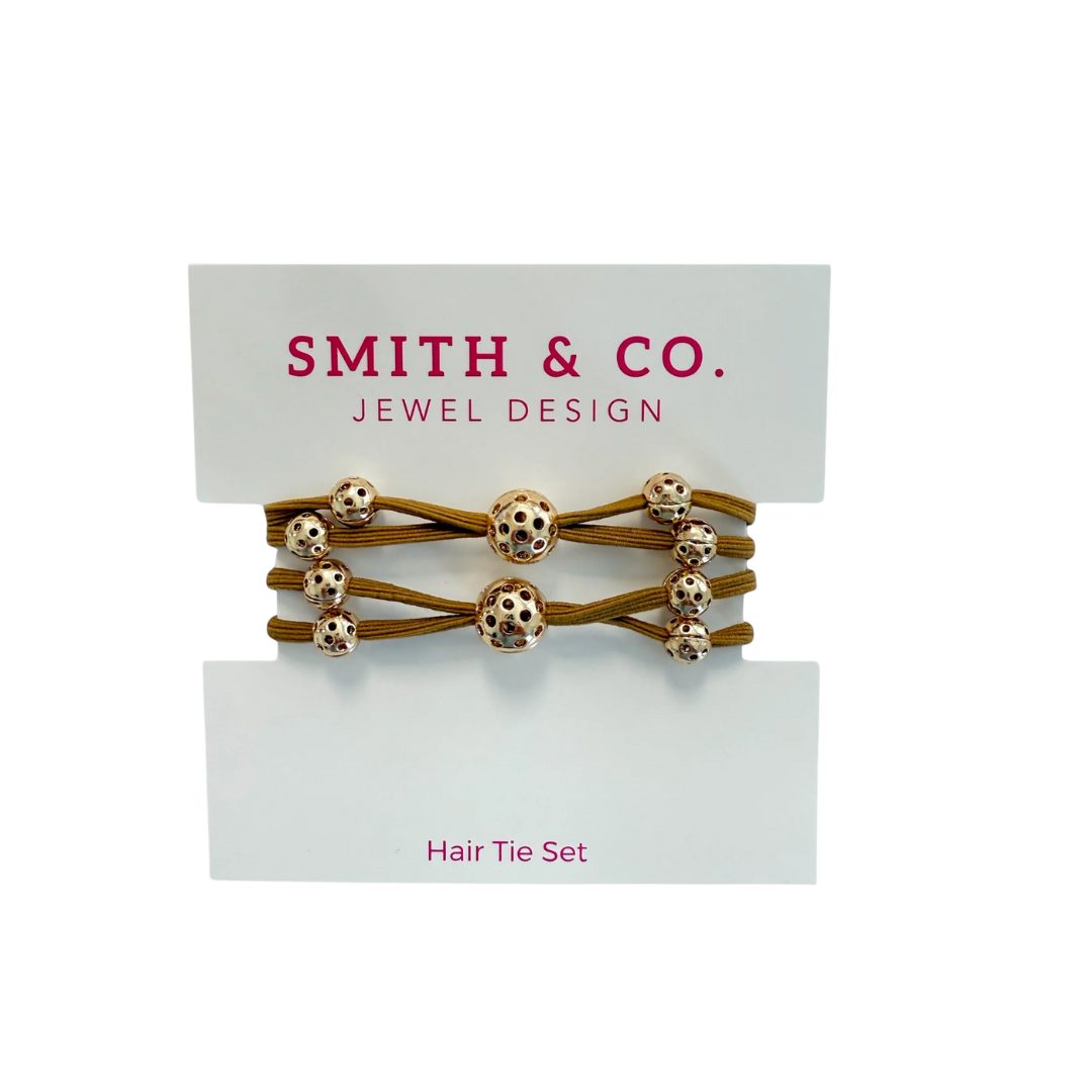 Sporty Chic Double Stranded Elastic Hair Tie With Gold Ball Charms .
