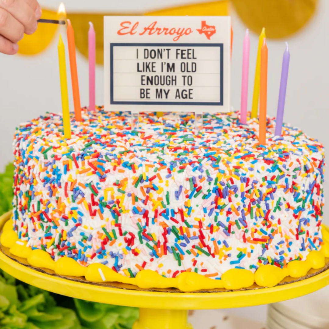 Add a touch of humor to your birthday celebrations with our Cake Topper Candle Set! The marquee sign design and colorful assorted candles will make for a fun and unique cake decoration. It's perfect for those who don't take themselves too seriously. (No one's counting anyway!)
