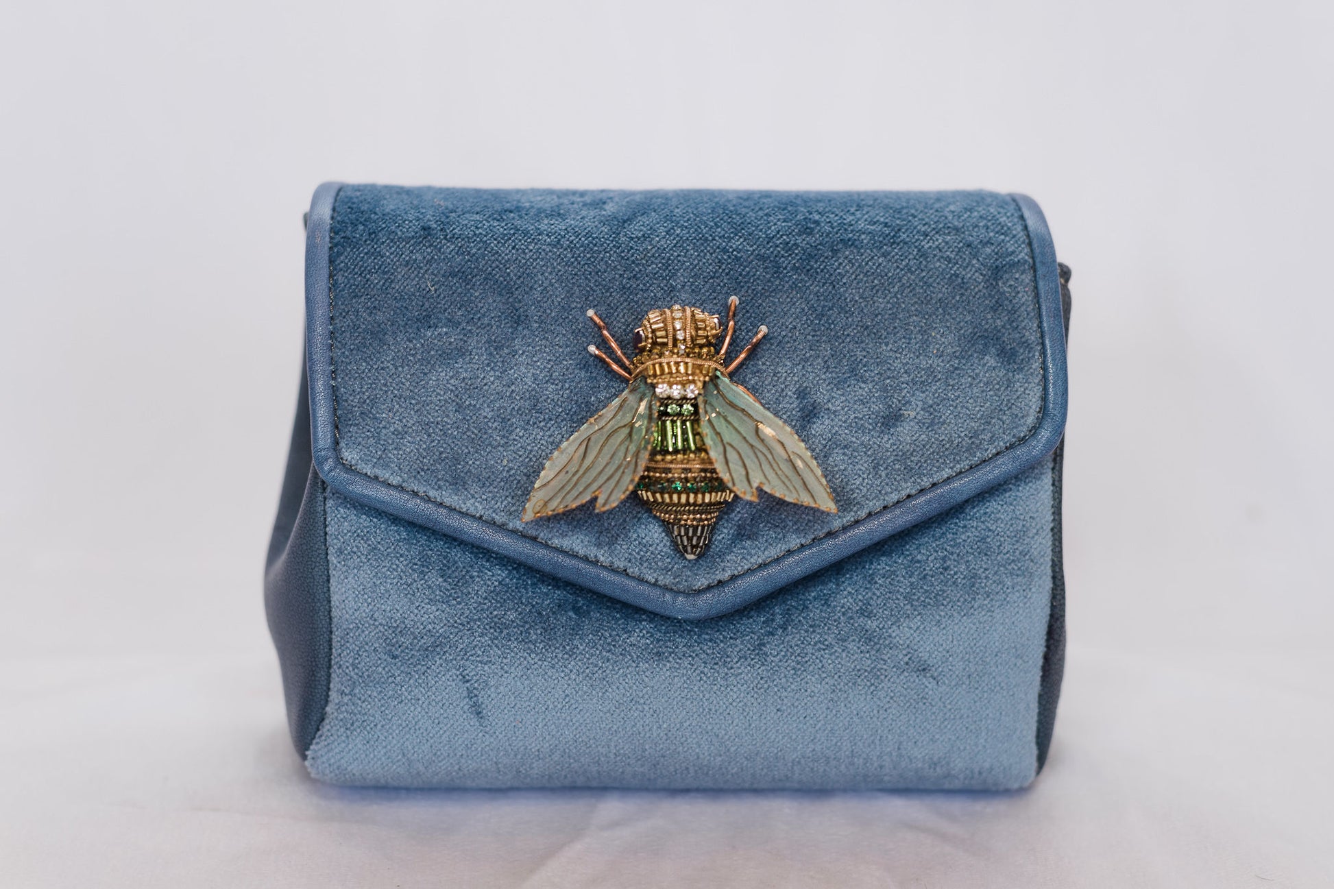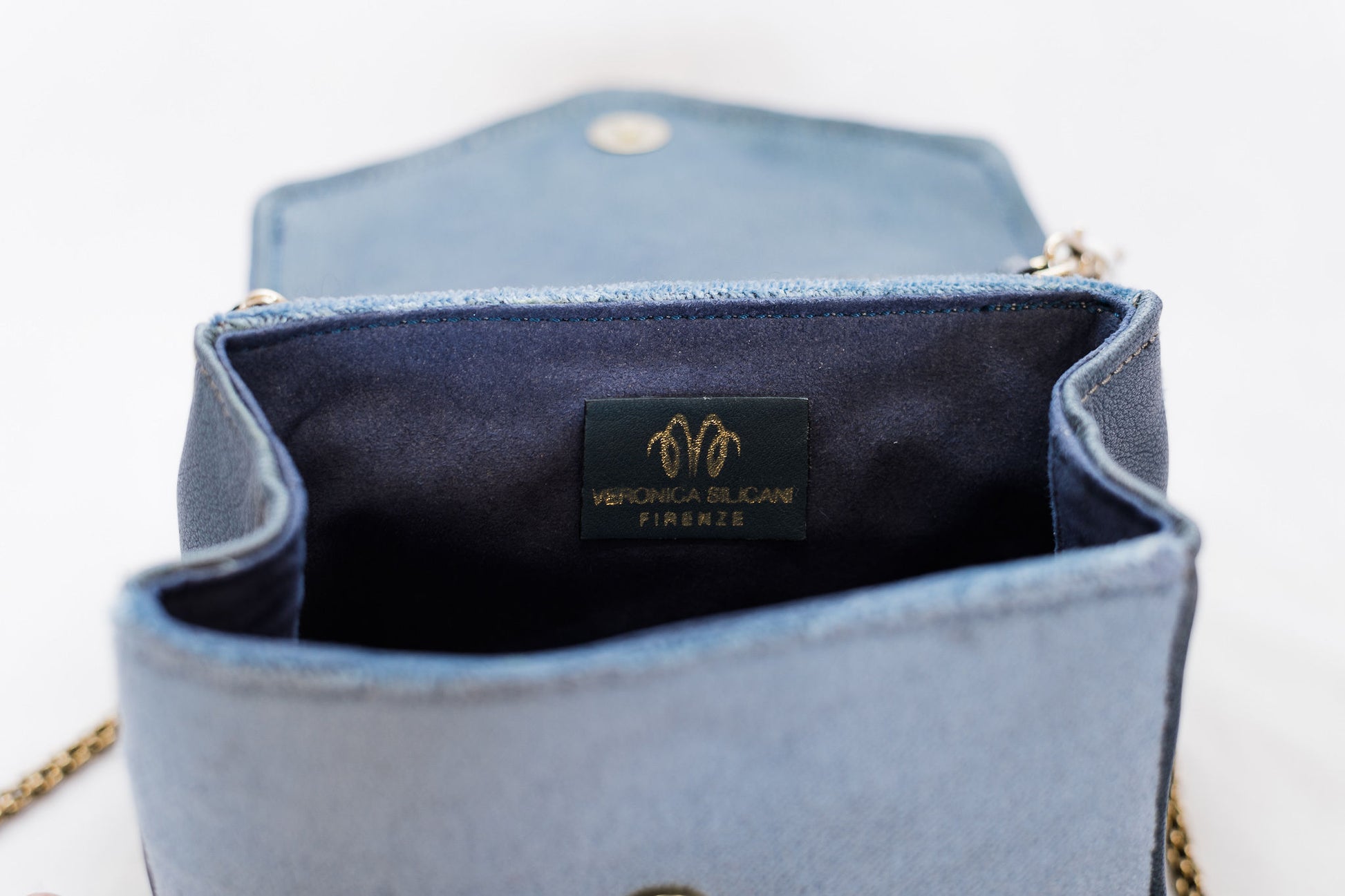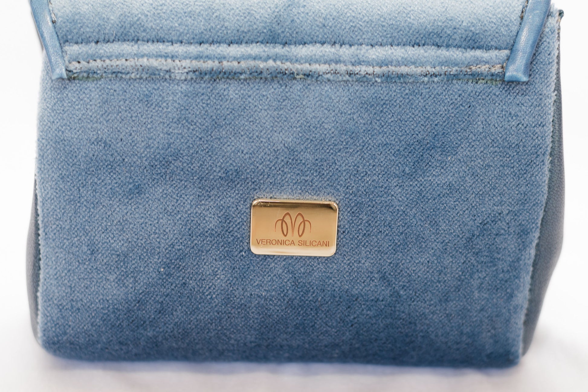 Each bag is unique and completely handmade. Elegant small handbag, in the “Bags and the City” limited edition. Made of solid color velvet fabric and high-quality leather. Leather interior lining with pocket and removable leather shoulder strap.