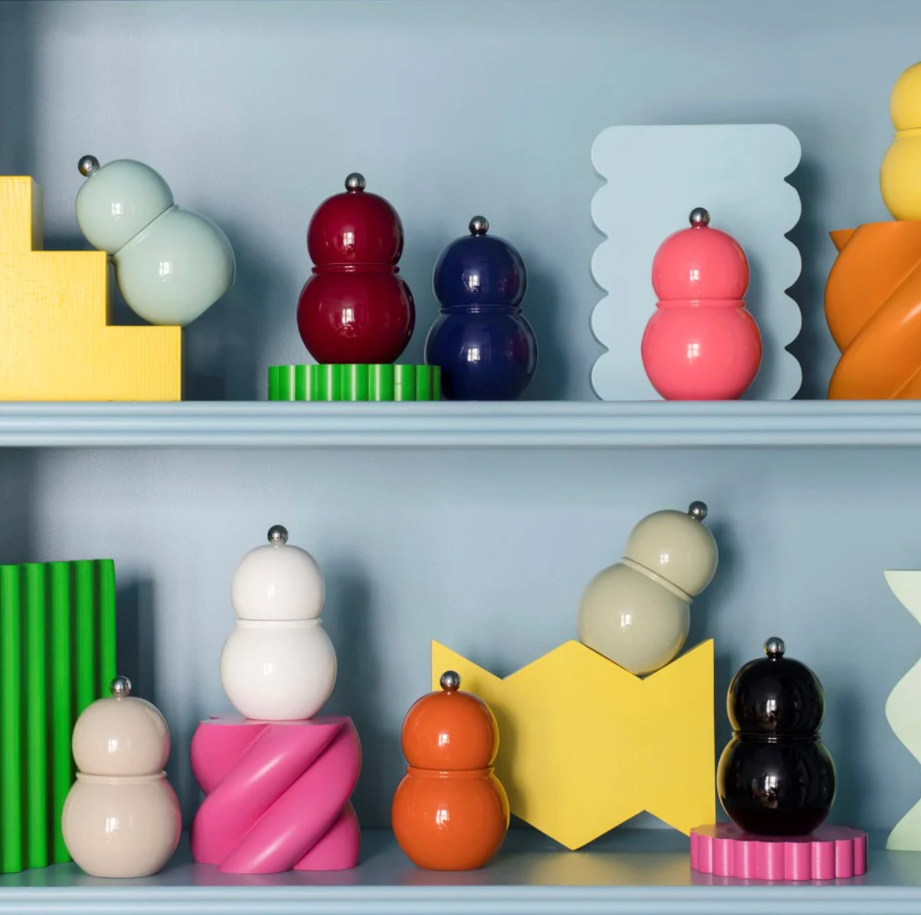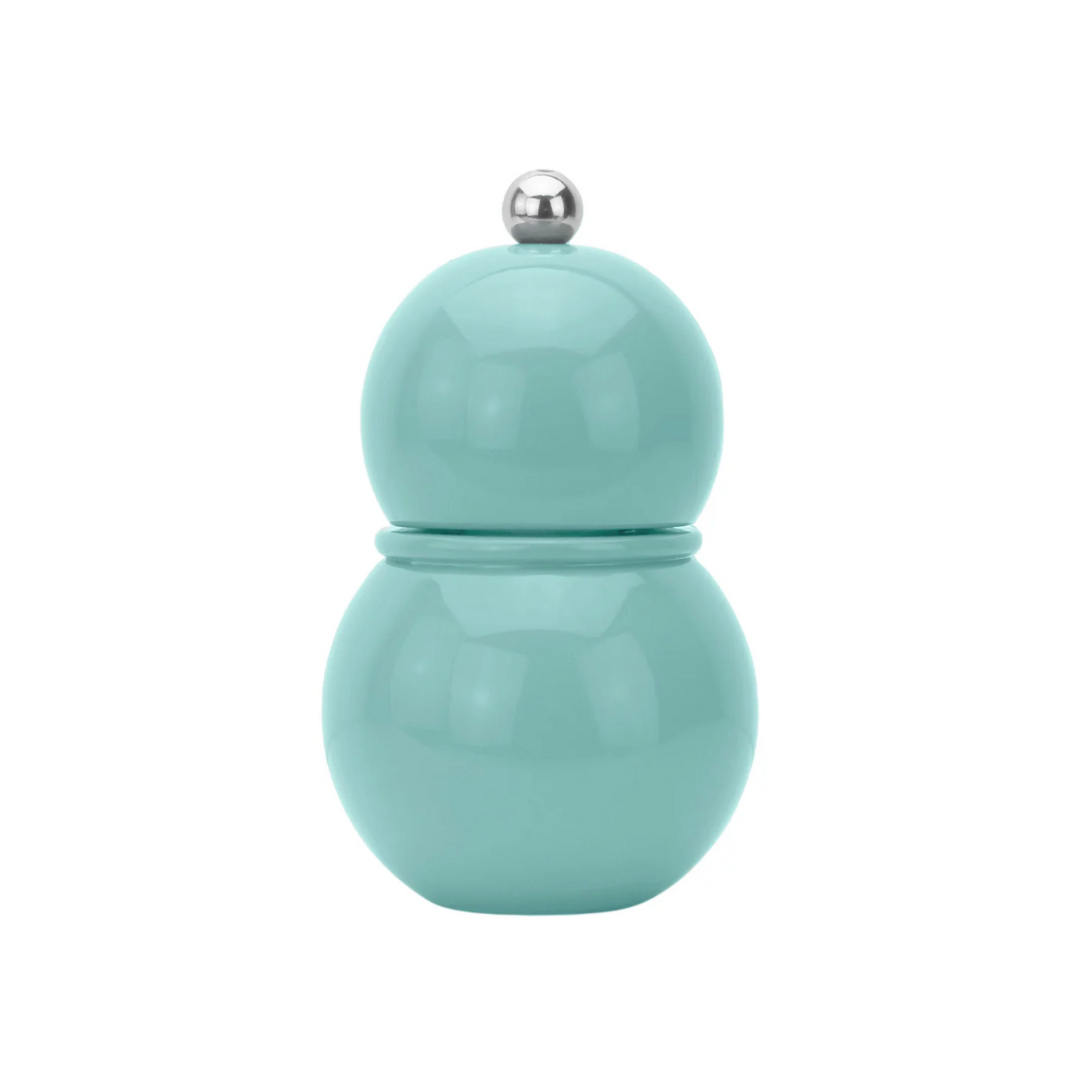 The Eau de Nil blue lacquered Chubbie salt mill, pepper mill is suitable for either Salt or Pepper. Featuring our iconic bobbin shape.