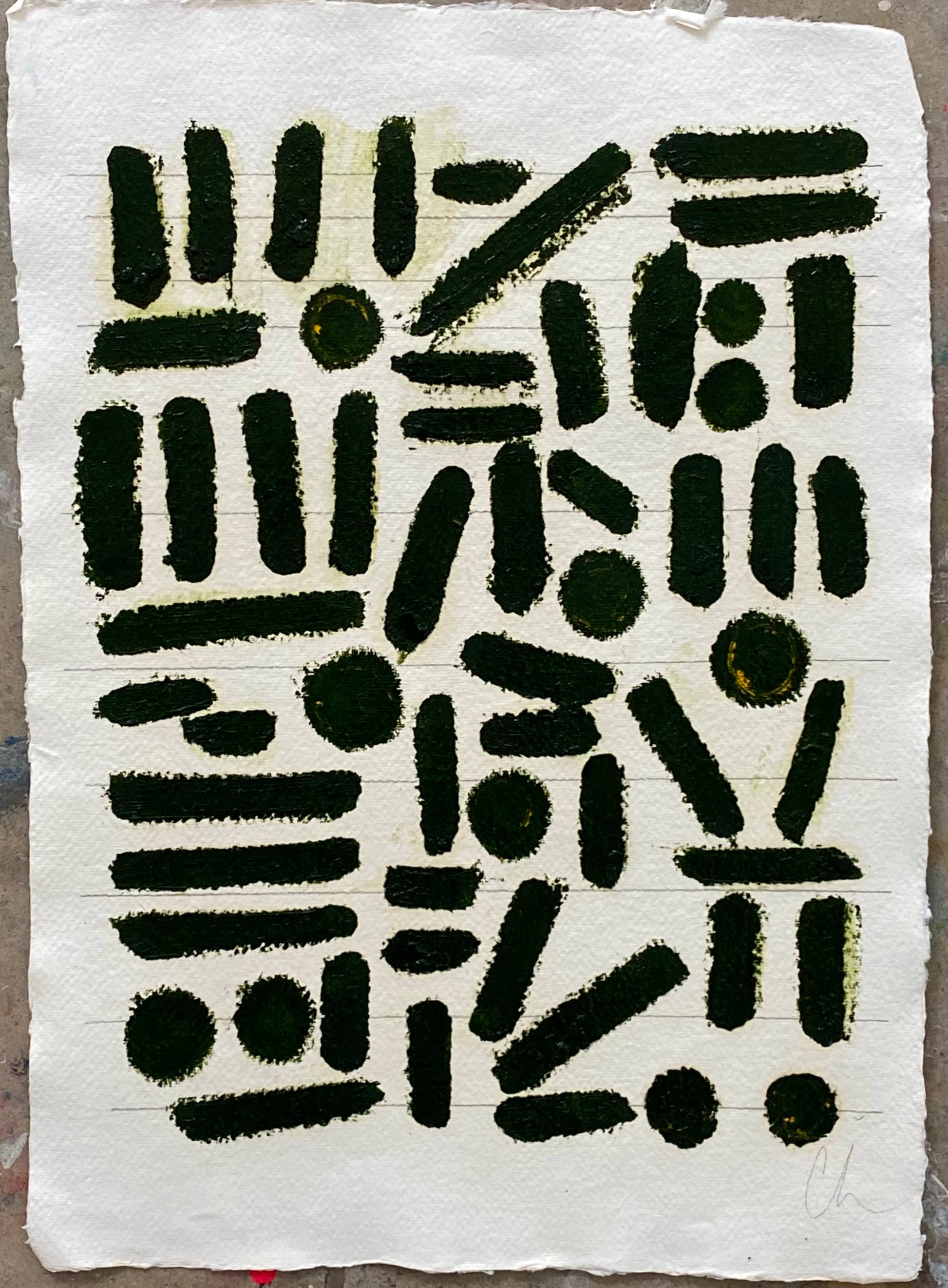 18x23, (dark ink green) oil on beveled cotton rag paper, custom framed floating with linen + gold frame