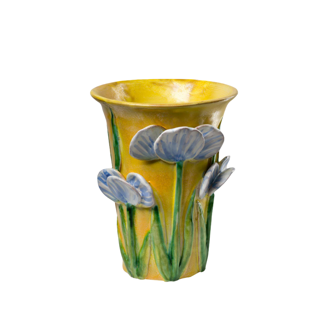 Italian Vase {Yellow w/ Blue Florals}