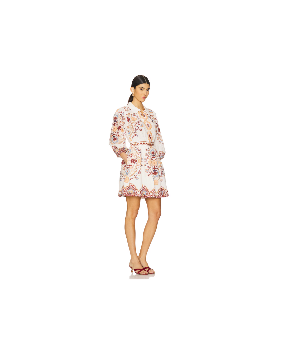 Ethically handmade from a cotton linen blend, the Leigh Mini Dress features long sleeves with intricately placed prints. Fabric buttons embellish the front while elastic at the back waist makes for the best and most comfortable fit.