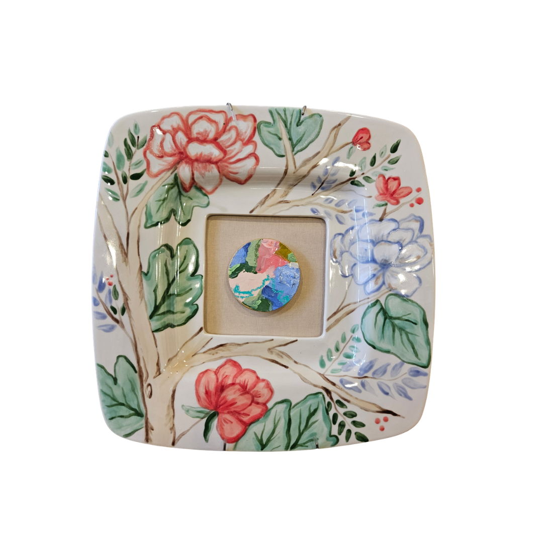 "The Merge Collection" merges traditional craftsmanship with contemporary artistry. Each piece is hand-painted and fired, then paired with a custom abstract intaglio, creating a one-of-a-kind mixed media artwork. Perfect for collectors who appreciate authentic and artisanal pieces.