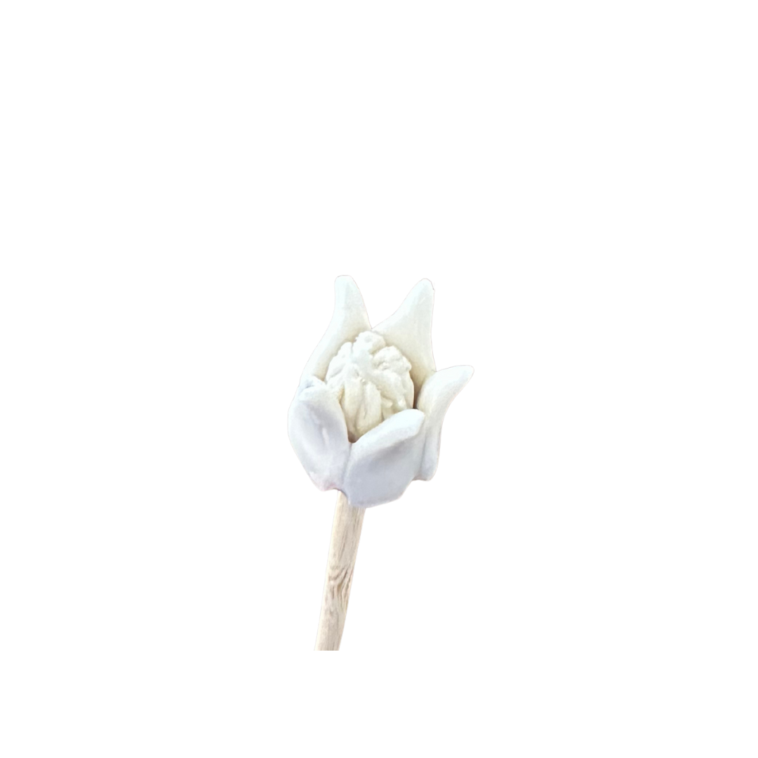 Diffuser flowers are all hand sculpted porcelain mounted on bamboo, becoming a delightful reusable addition to any room diffuser. Handmade in South Africa.