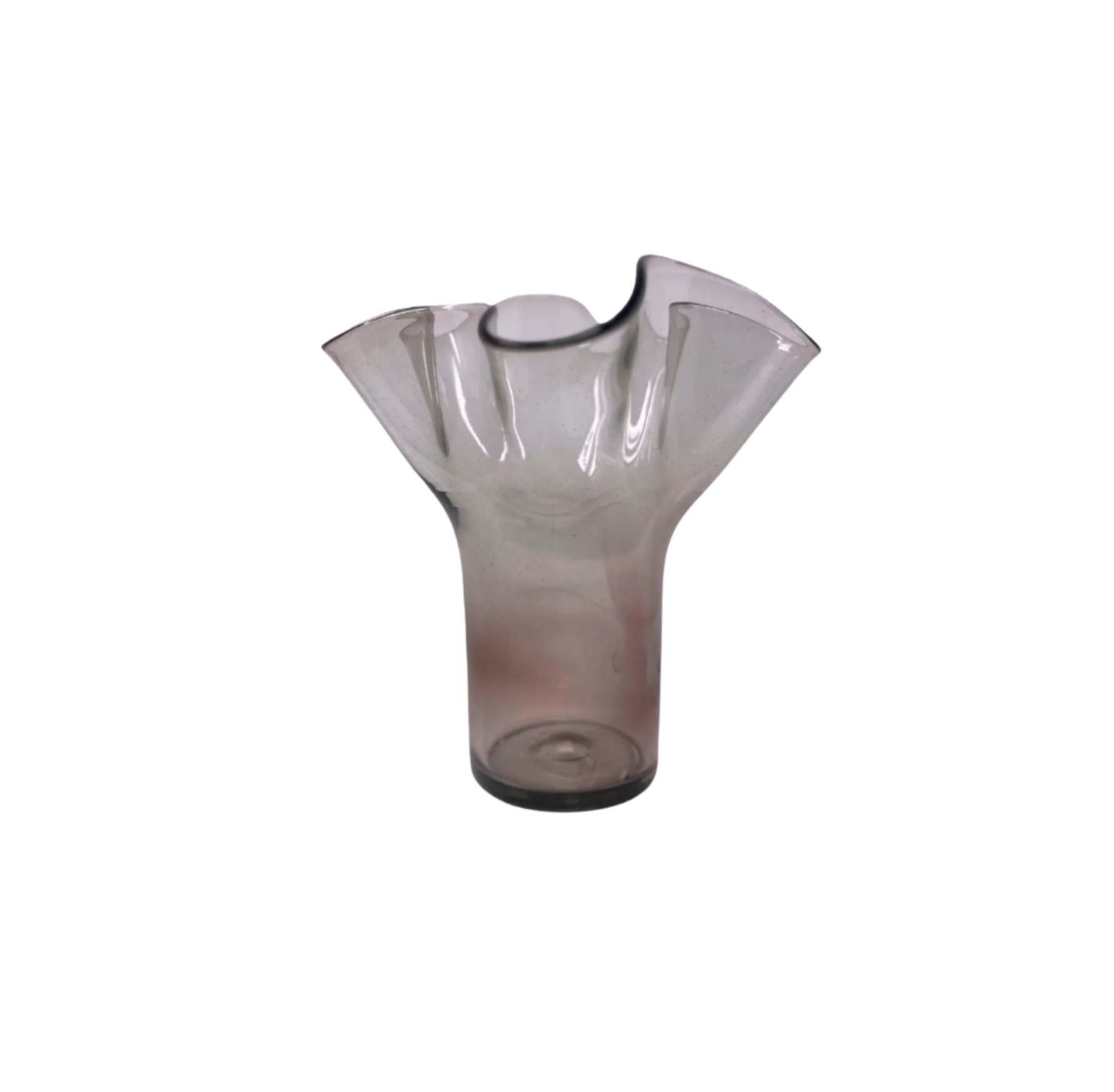 Perfect for smaller places, like side tables, bookshelves, or kitchen corners. Like all of our glassware, this vase is made with mouth-blown, recycled glass.