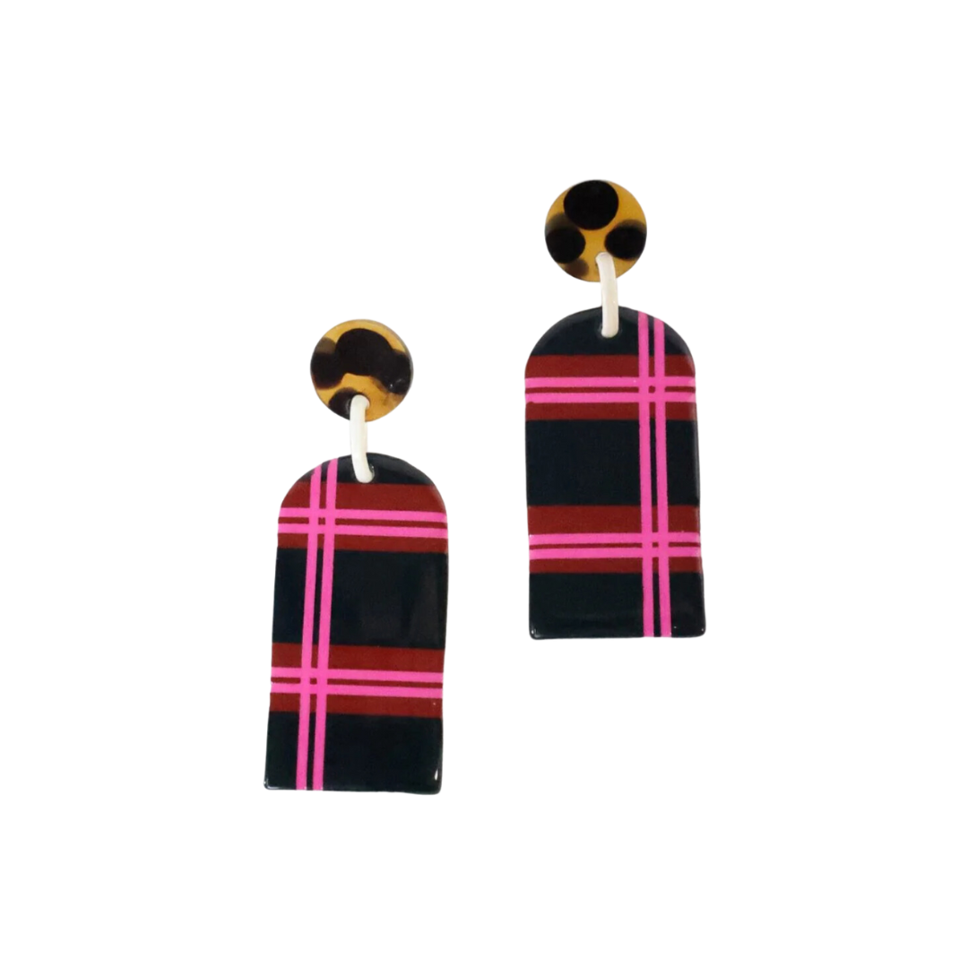 The Plaid Arbor Earrings take a classic plaid style and mix it with a bold colorway.