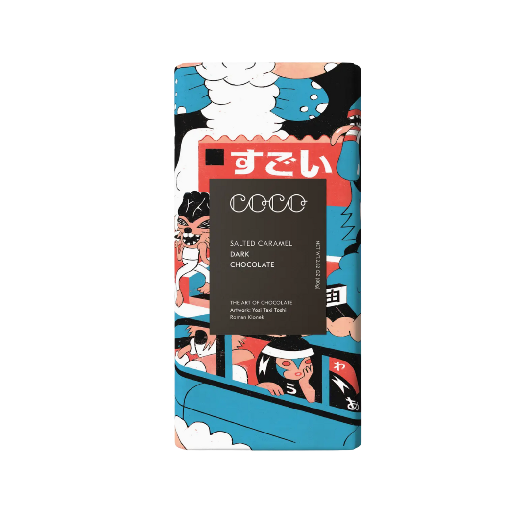 This dark chocolate as the new member of the family has a rich cocoa scent with hints of caramel sweetness; the chocolate-like notes are perfectly balanced with the sweetness from caramel, and occasional bursts of saltiness, embedded in the creamy and smoothness, leaving a pleasant finish on the palate. Weight: 80G Cocoa Origin: Colombia Artwork: Roman Klonek Attributes: Vegetarian, Vegan, Free from artificial colours and flavours.