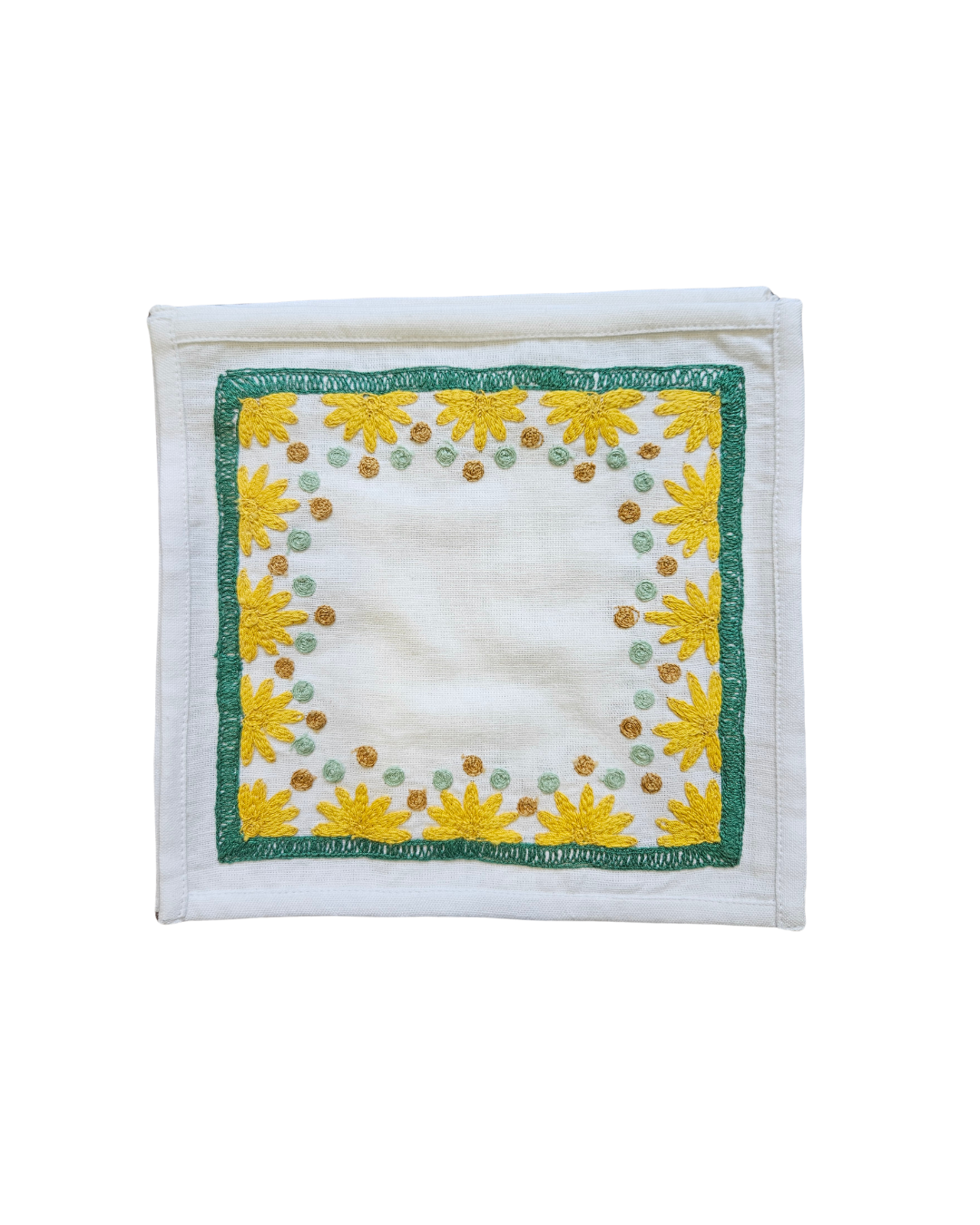 Our Starburst design is created using an artisanal chain stitch embroidery technique. This embroidery resembles the techniques used to create original Suzani textiles. Colorful and sophisticated, our Starburst cocktail napkin add a punch of color to any summer table.