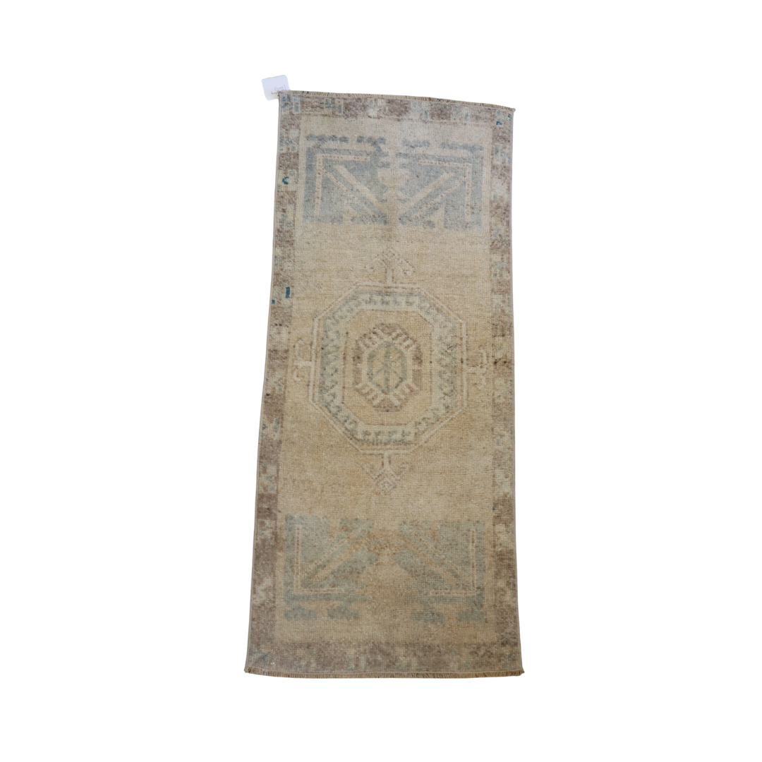 Handwoven vintage rug measuring 3.45' x 1.45'