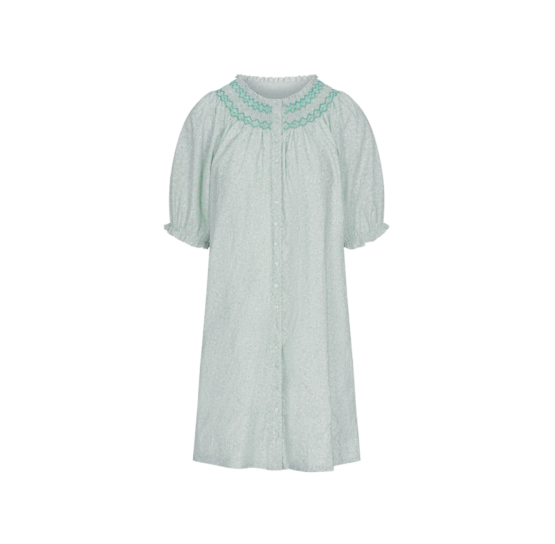 Easy, breezy, and made for real life—the Whitney Dress in Verdant Blooms is as wearable as it is charming. Designed with a swing fit and slight puff sleeves, this dress is effortless to throw on and go. Thoughtful details like side pockets (perfect for stashing random treasures) and a soft cotton lining make it truly functional. The minty green floral print with smocking accents adds just the right amount of color, making it a dress you can wear literally anywhere—from playgrounds to ballet recitals and everything in between.