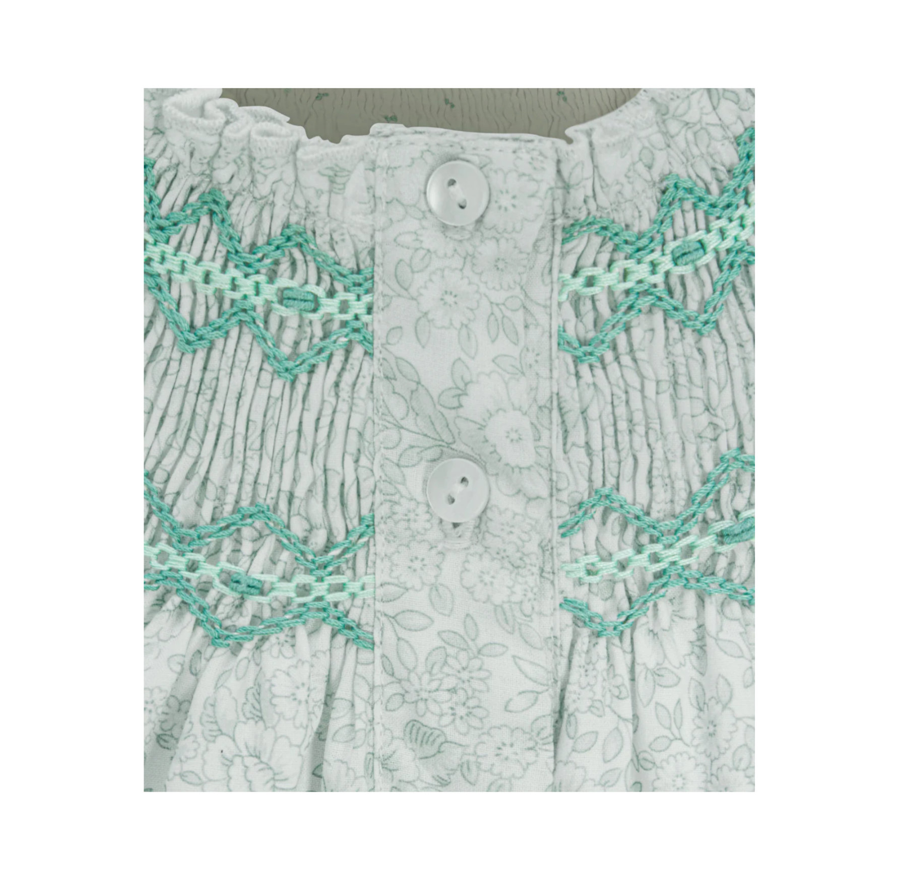 - Hand smocking reinforced by elastic allows for easy pull-on styling