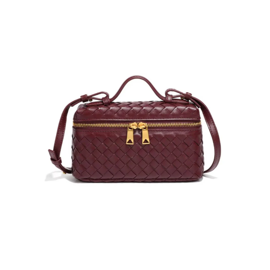 This woven top handle bag in a rich wine hue combines timeless craftsmanship with modern elegance. Its structured square design provides a refined silhouette, while the sturdy top handle ensures comfortable carry. Perfect for adding a touch of sophistication to any outfit, this bag is both a practical accessory and a statement piece. Ideal for professionals and style connoisseurs seeking durability paired with a unique textured look.